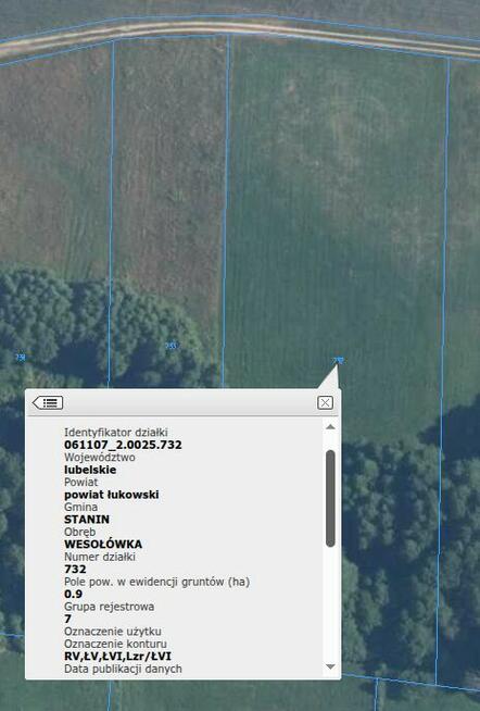 Na sprzedaż łąka o powierzchni 0,9 hektara w miejscowości Wesołówka. Lokalizacja: Wesołówka, Stanin, powiat ...